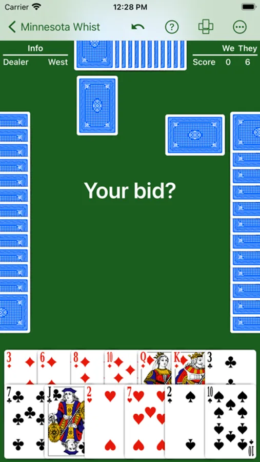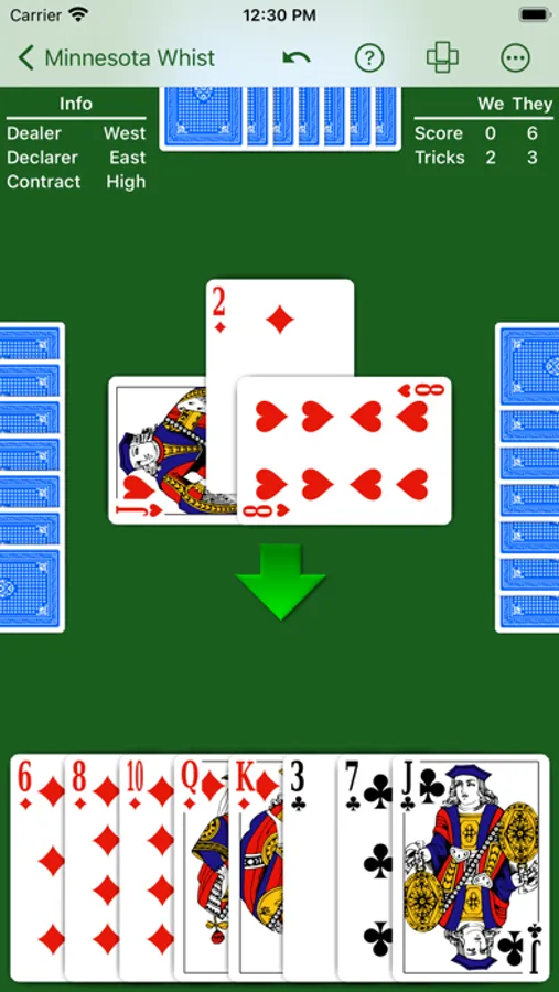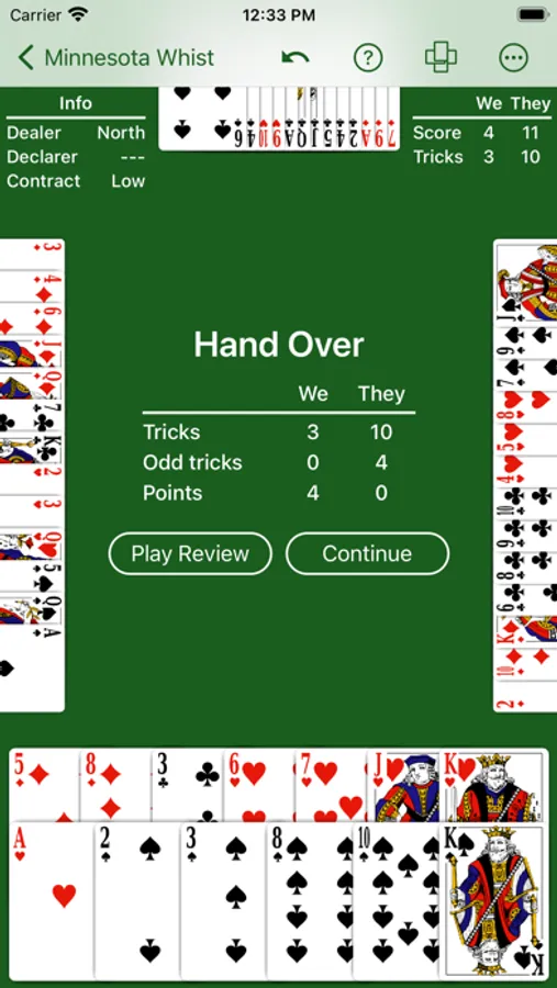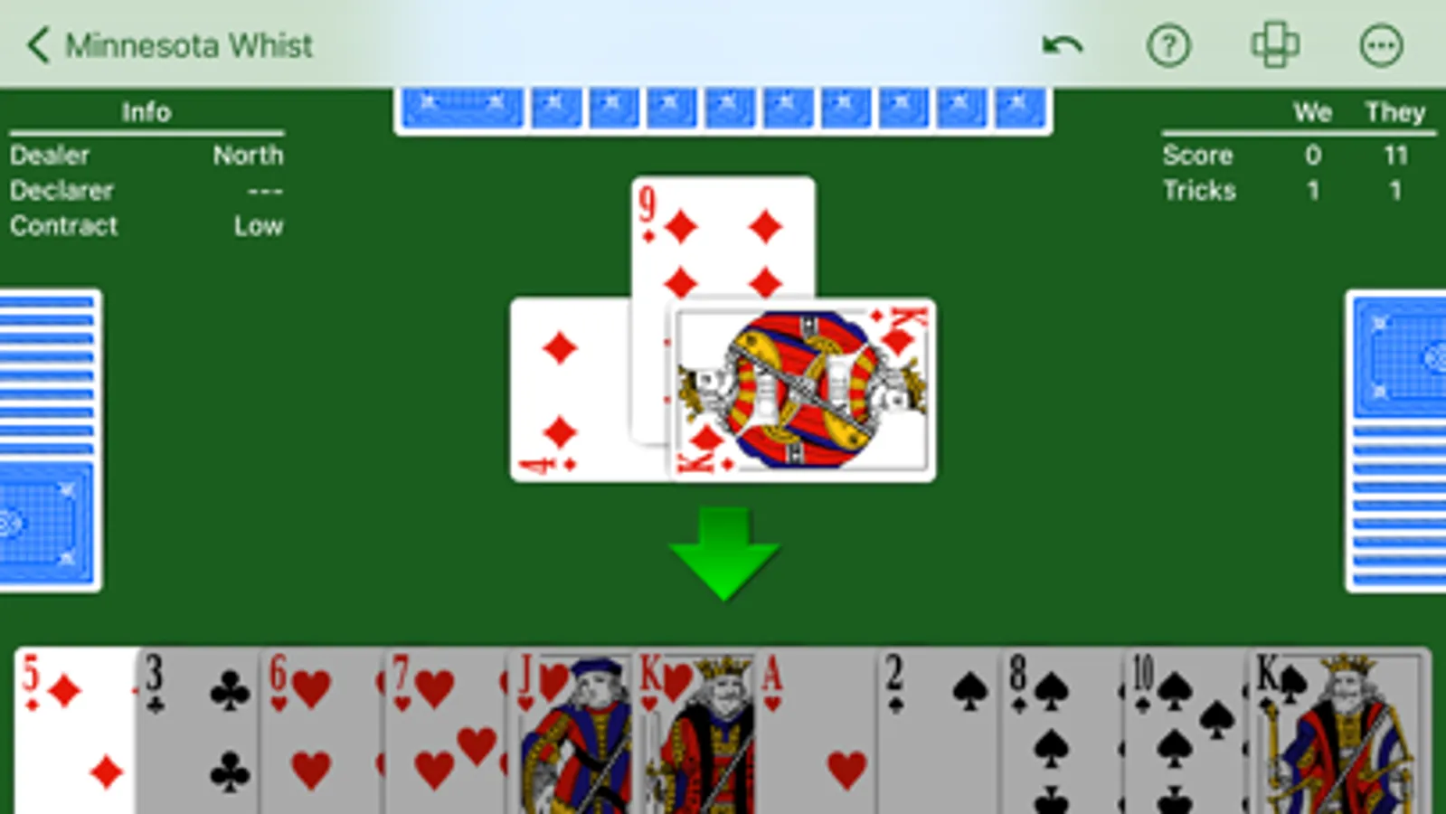 NeuralPlay Minnesota Whist offers many rule options and features and for you to enjoy. Play with predefined rules for the Minnesota Whist or Norwegian Whist variations. Customize and let the NeuralPlay AI challenge you with your favorite rules!