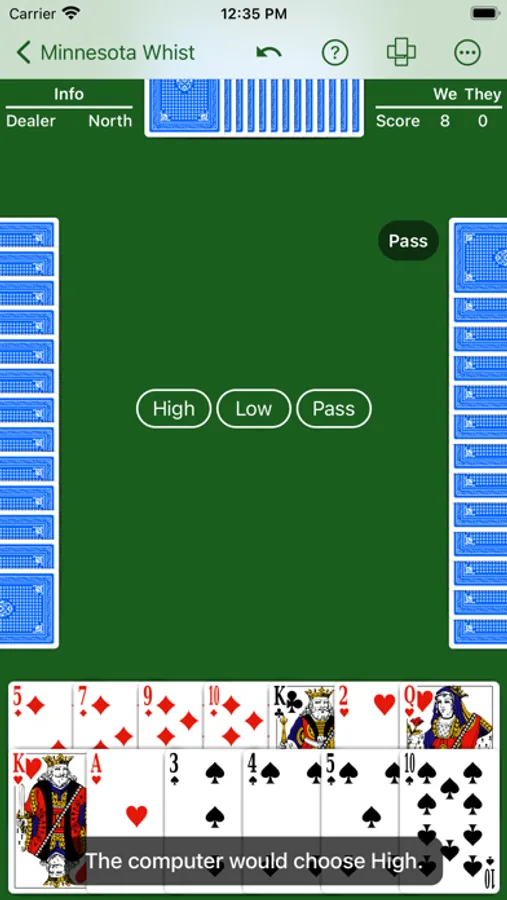 • Bidding style. Choose to bid either by showing cards to indicate high or low; or with buttons to indicate high, low, and pass bids.