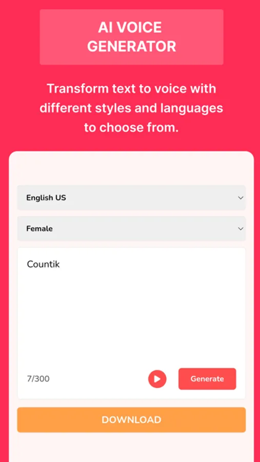 Free text-to-speech tool that uses text to generate AI voices like the popular lady voice, rocket, and Ghostface (scream) and much more. It also gives you the option of downloading the generated voice for later use. You can use it to read text and e-books aloud.