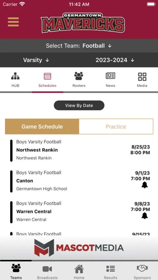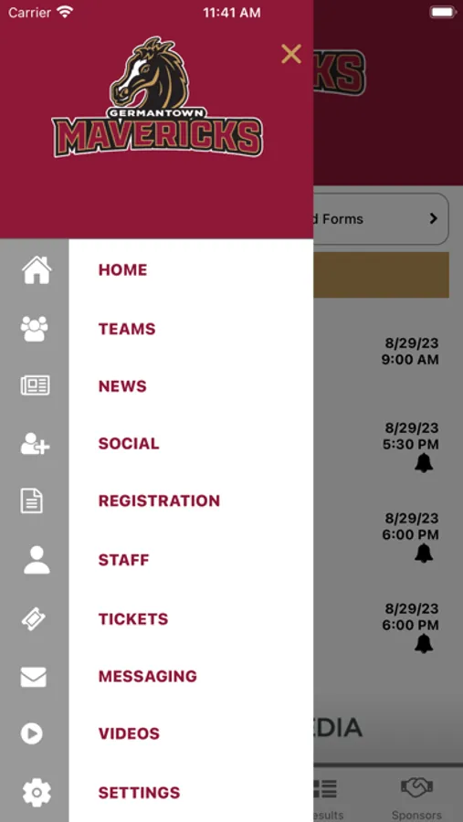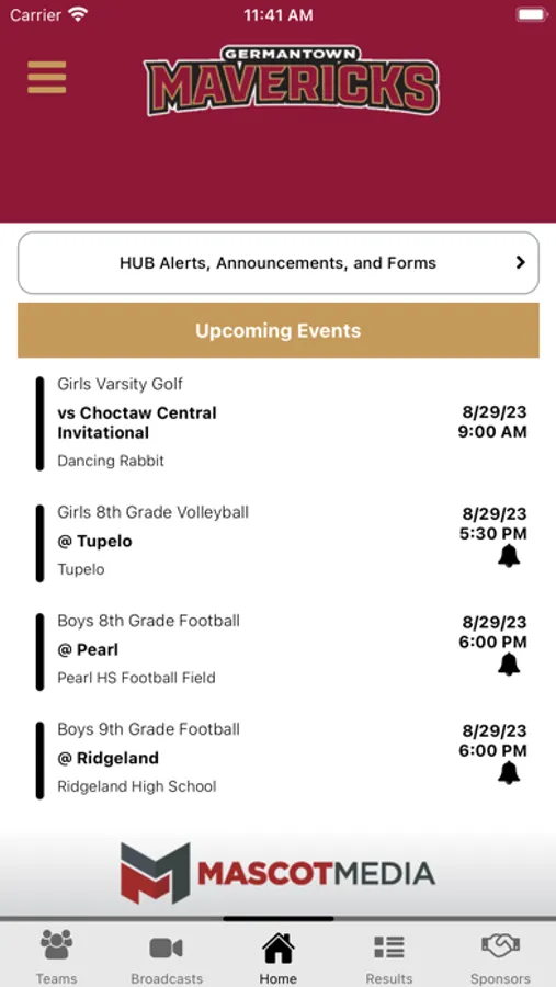 -Supporters: Special Thanks to local boosters and supporters of Germantown Mavericks Athletics with a directory including website and in-app calling.