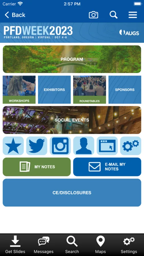 The AUGS PFD Week mobile application allows you to view the schedule, presentations, exhibitors and speaker details from the conference. Users can take notes adjacent available presentation slides and draw directly on slides inside the app. Note-taking is also available in the posters and exhibitors modules.
