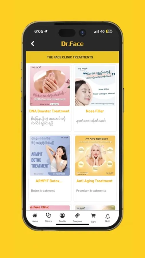 In DrFace app, you can buy DrFace Skin Care products, browsing available treatments from The Face clinics, collection points and reuse at clinics, looking for nearby DrFace product shops, booking for appointments and many more.