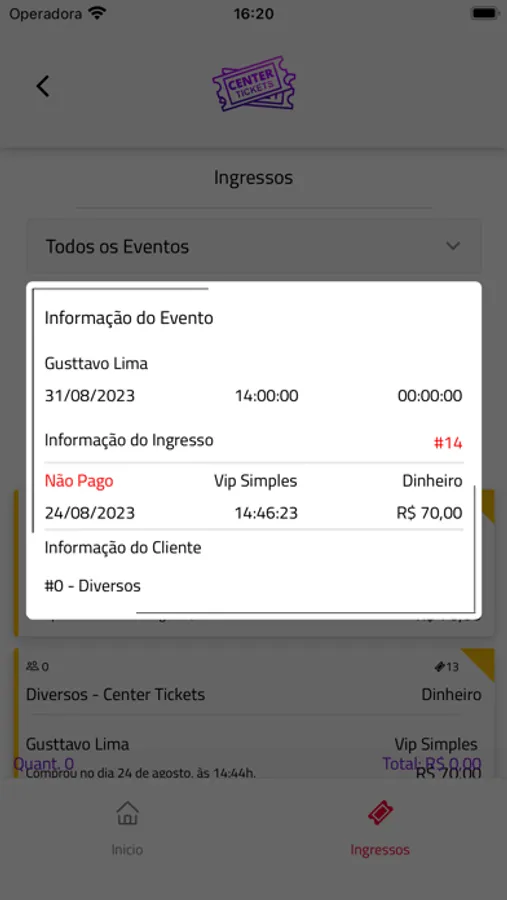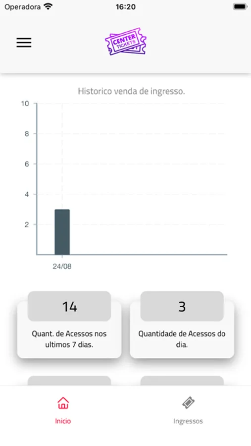 Aplicativo Center Tickets Vendas, esse aplicativo é feito para os Promoter de eventos, você vai conseguir acompanhar a venda de ingressos, ver os valores dos ingressos, visualizar os eventos que você é responsável, tudo em um painel só. Você irá receber notificações das vendas dos ingressos, entre outras funções.