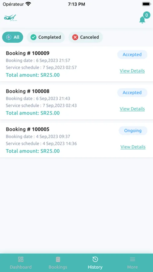 يستقبل الموظف الحجز من مزود الخدمة بعد ذالك يذهب الموظف الى العميل من اجل الخدمة الطلب .