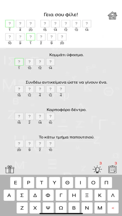 Κουτάκια με ίδιο αριθμό έχουν το ίδιο γράμμα!