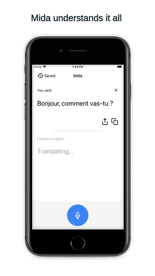 Mida listens to hundreds of languages — even many languages mixed together — and turns your message into elegant, professional English. Users have used Mida to chat with doctors, file immigration papers, speak with family, and compose work emails. Built by immigrants and children of immigrants.
