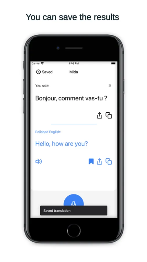 - Instant Sharing: Effortlessly share your original voice and its English counterpart.