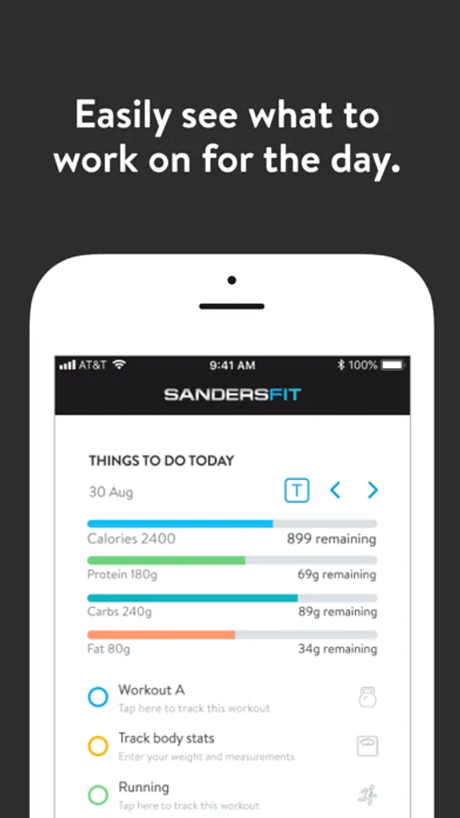 With the SandersFit App, you will have access to workout programs designed specifically to help you reach your fitness and health goals! You can follow & track your workouts, your nutrition, your lifestyle habits, measurements and results–all with the help of your coach.
