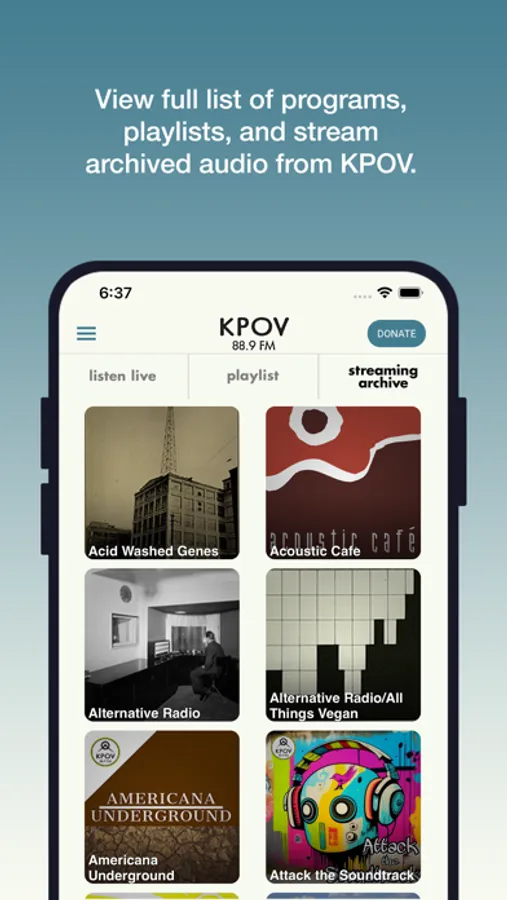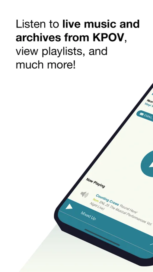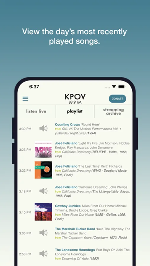 • The KPOV App displays the playlist associated with the episode and program description to view while listening to archived content so you can explore for more information.