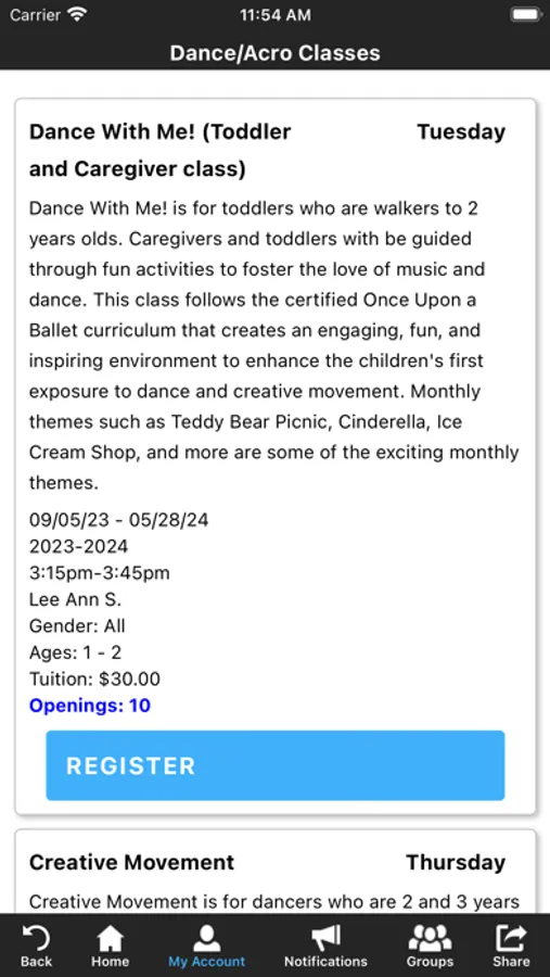 The Doxa Arts Academy app allows you to manage your account with ease, register for classes, and workshops or intensives. You'll also receive important notifications about class changes, closings, registration openings, special announcements, and upcoming events.