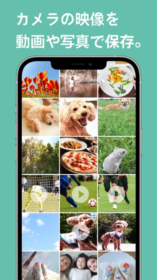 カメラの映像をスマートフォンで確認することができ、静止画や動画を撮影することも可能です。撮影した画像はスマートフォンに保存されるので、SNS等で簡単に共有ができます。