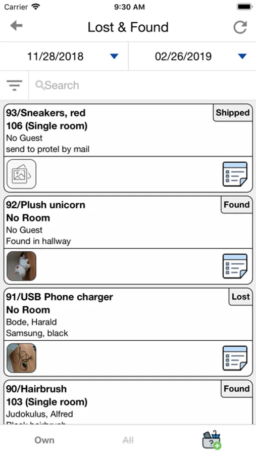 - Lost & Found: Create and edit entries, add new pictures using the mobile phone. Items are immediately shown in protel Front Office.
