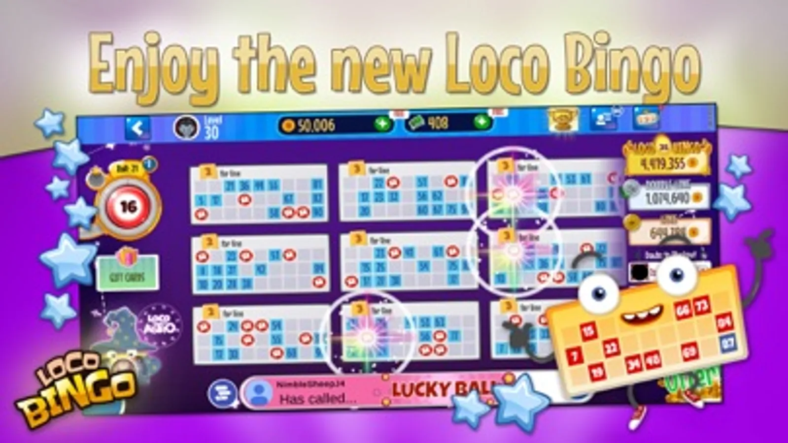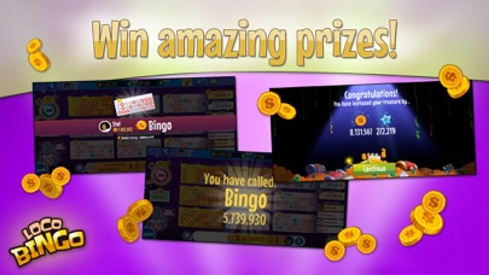 Loco Bingo, the best bingo app to play games & free, with slot machine games.