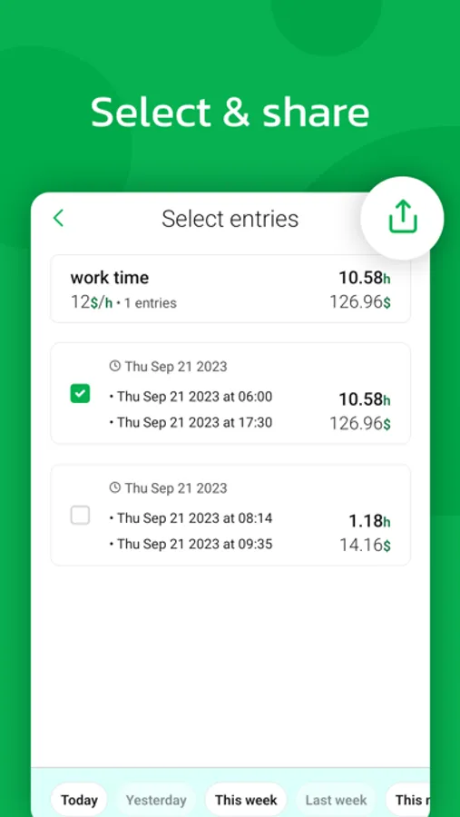 • Select your hours in a variety of ways such as by week, month, pay period or all of your shifts at once in Timesheet app