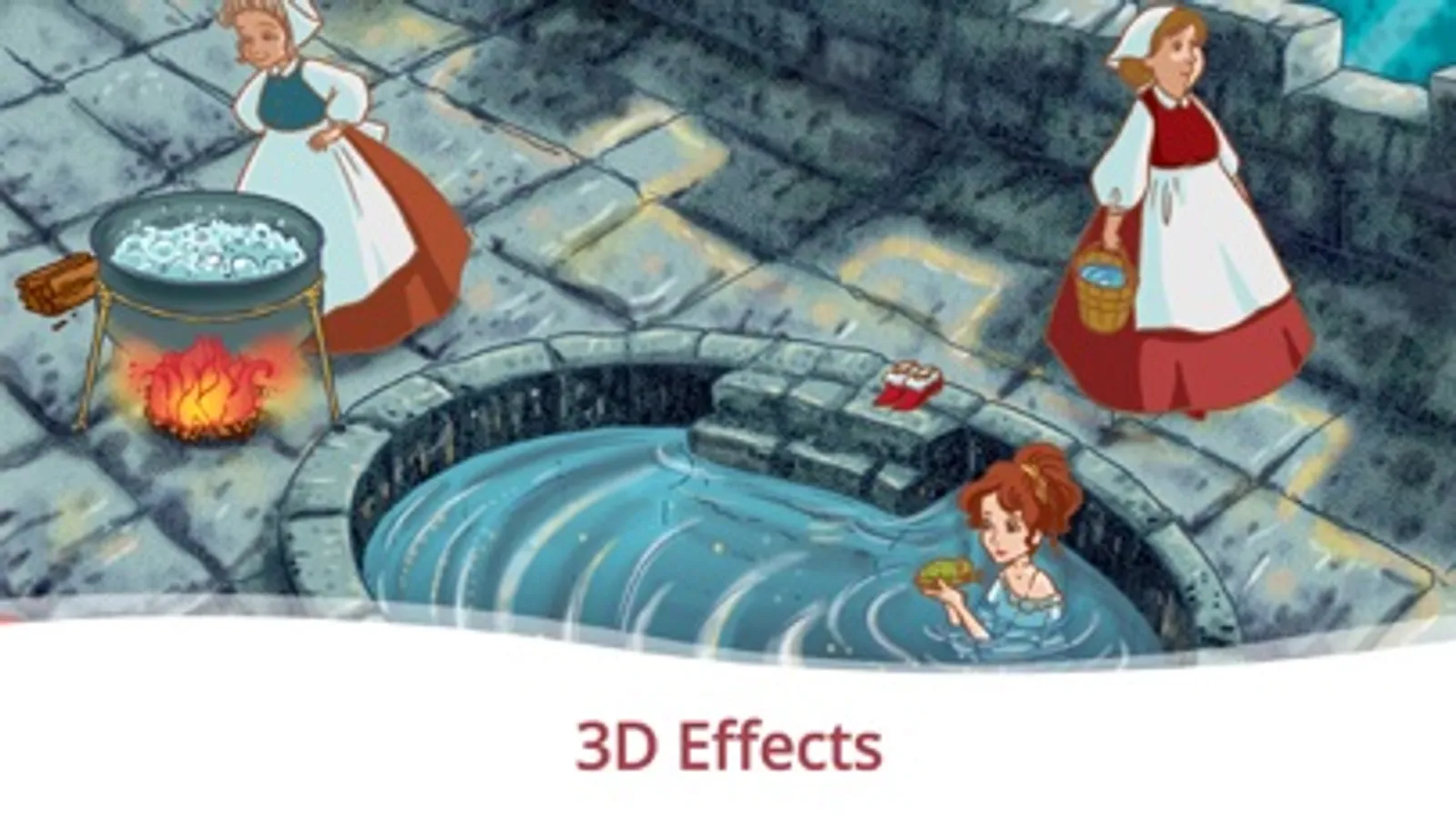 Vibrant full-colour 3D-illustrations, vivid child-appealing animations, speaking music and magic atmosphere...meet the sleeping beauty and the prince in their enthralling escape from the evil bane.