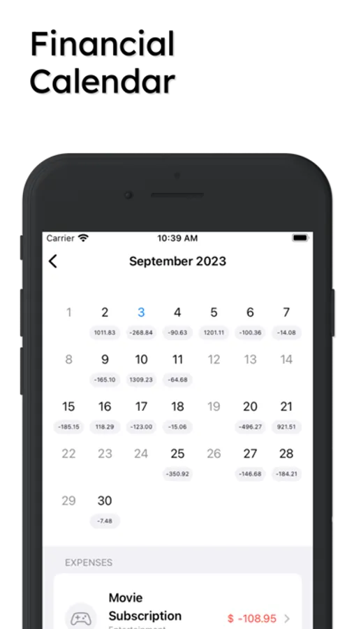 - Financial calendar: Our intelligent financial calendar shows you clearly on which days income and expenses are planned. This will help you better prepare for financial peaks and troughs.