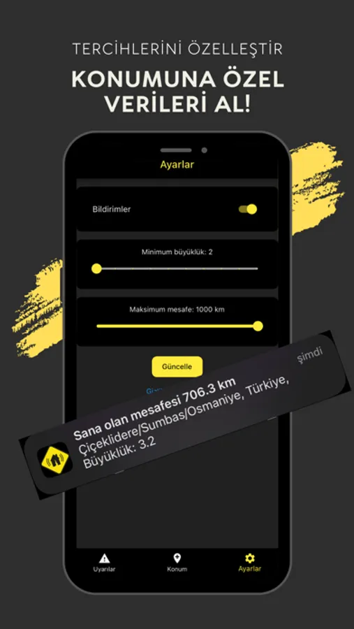 Evde, işte ya da seyahatte; nerede olursanız olun, konumunuza en yakın depremler hakkında saniyeler içinde bilgilendirilirsiniz.
