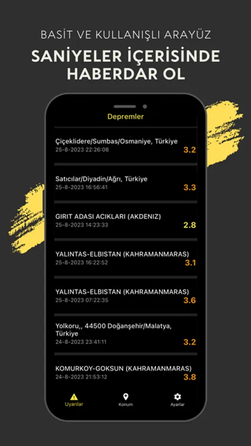 Güvenli ve kullanıcı dostu Deprem olduğunda saniyeler bile hayat kurtarır. Depremler Anlık Uyarı, konumunuza özel deprem uyarılarını saniyeler içinde cebinize ulaştırır.