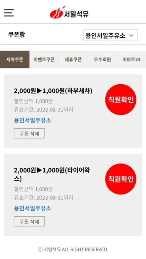 *각 지점 제공 고객용 쿠폰 확인 : 생일 축하 쿠폰, 각종 부대 사업장(세차장, 커피점, 음식점 등) 할인권 등