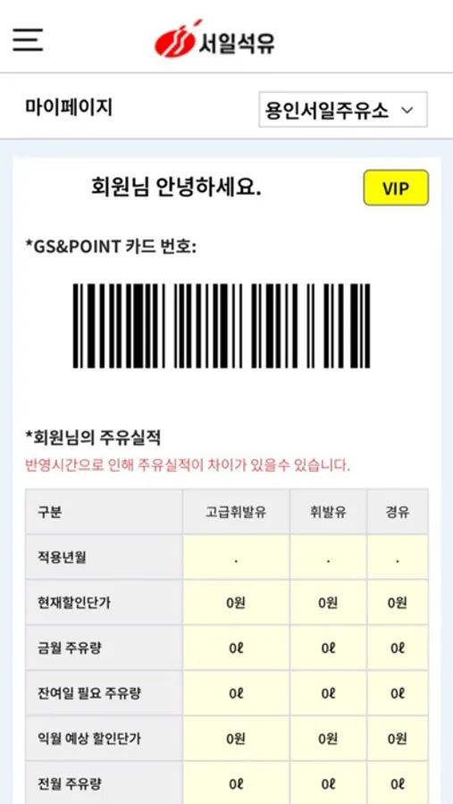 *서일석유 어플에서 GS&POINT 카드 사용 및 적립 가능