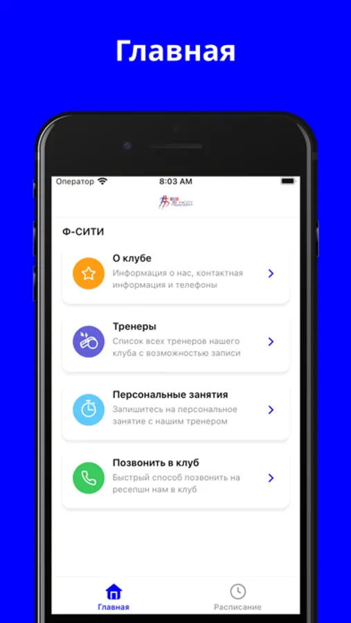 Приложение для клиентов фитнес центра Ф-СИТИ.