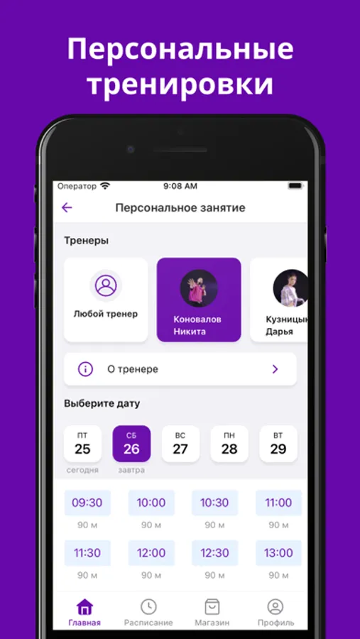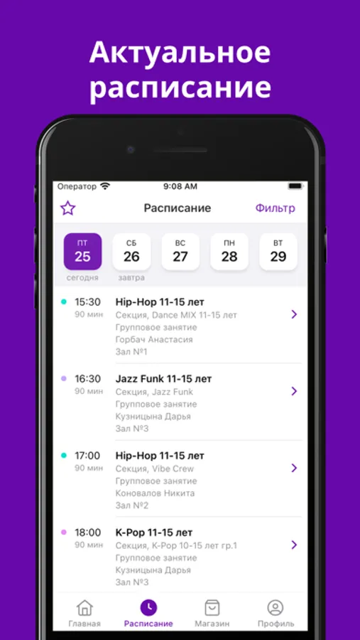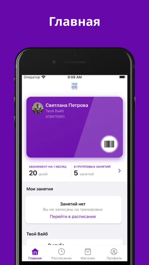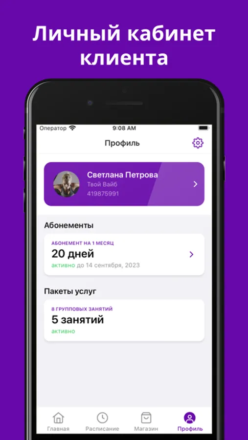 - получать напоминания о заканчивающихся абонементах и занятиях