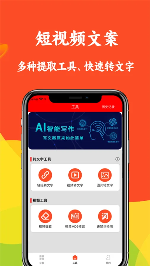 短视频文案,是一款集视频转文字、链接转文字,文案伪原创,AI智能写作以及视频处理于一体的短视频创作神器,让短视频创作者摆脱手抄文案,写文案没有灵感的困扰,每个短视频创作者都值得拥有。