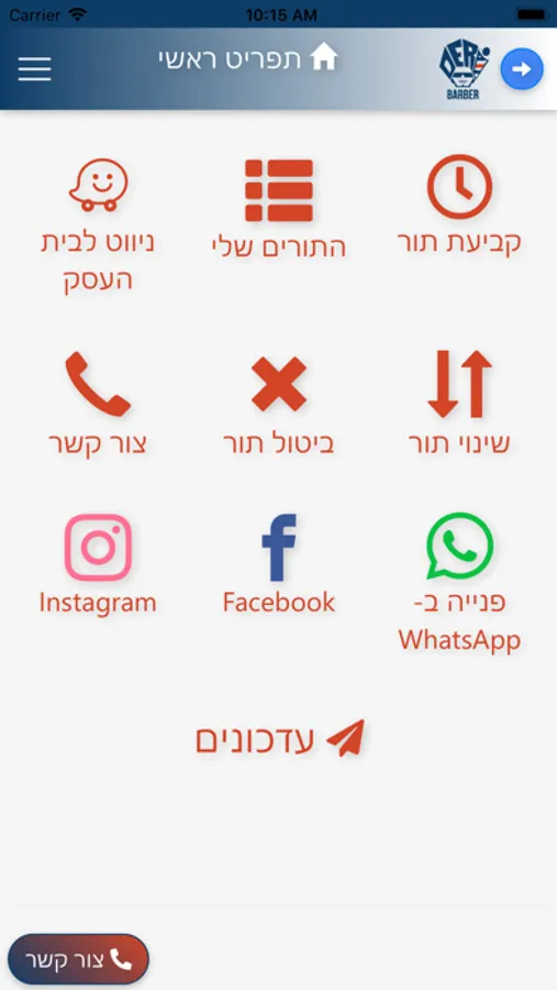 באפליקציה אפשר לקבוע תור, לנווט באמצעות Waze ולפנות אליי באמצעות WhatsApp.
