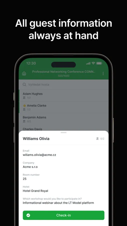 • Track guest information in real time. Whole guestlist is automatically synchronized and the information is always up to date.