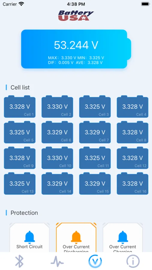 The BATTERYUSA management system is connected to the active equalizer via Bluetooth to monitor the battery status, collect, store and process information during battery operation in real, time Easy for after-sales management。