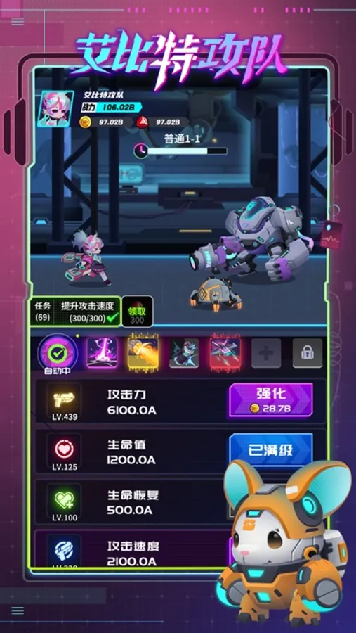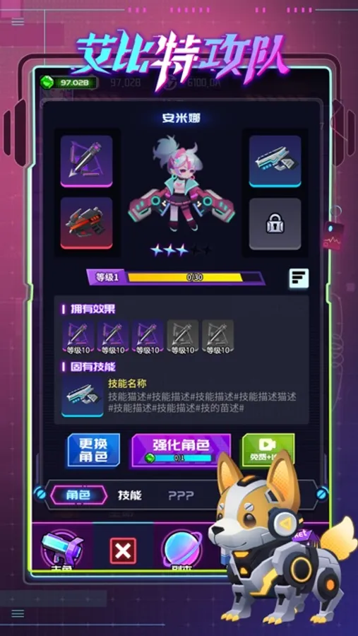 《艾比特攻队》是一款萌趣赛博朋克风格的放置射击游戏。