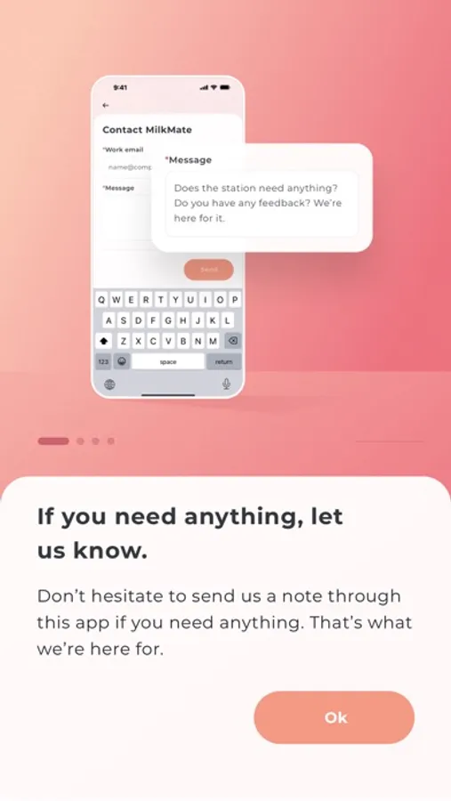 Introducing the revolutionary breast pumping solution for the workplace: MilkMate's innovative solution is designed so working parents are required to bring nothing with them to work, offering a more seamless and efficient breast-pumping experience. With MilkMate, your office space will feature a multi-user, high-performance breast pump and pre-sterilized, pre-assembled single-use breast shield kits. The MilkMate app is designed to use in tandem with the MilkMate station to ensure that breast shield kits are always in stock and ready for use! Our goal is to create the optimal experience with MilkMate's solution so we are excited to continue to launch new features to engage our super-parents and build a community of support. We're here to empower working parents and the employers who support them.