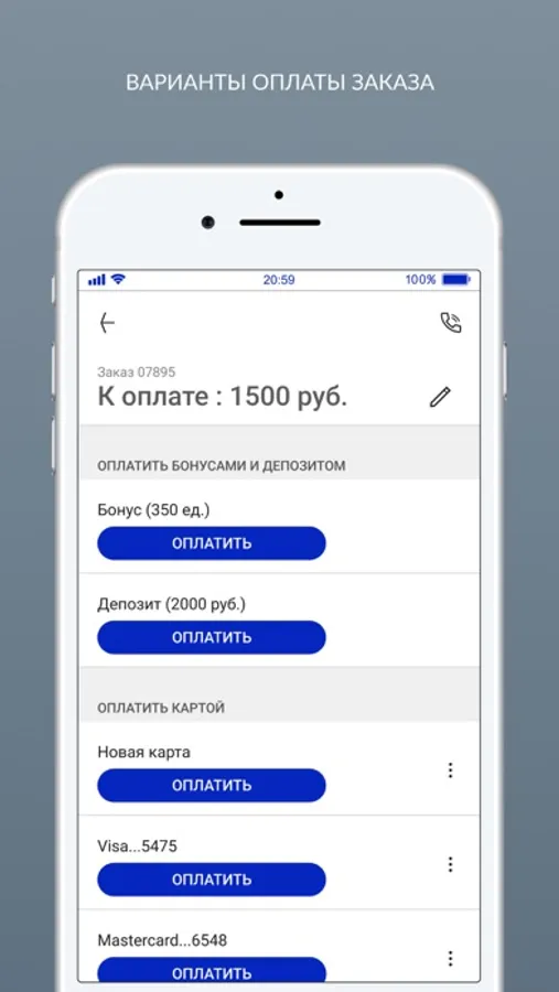 - оплатить заказы банковской картой, бонусами или депозитом;