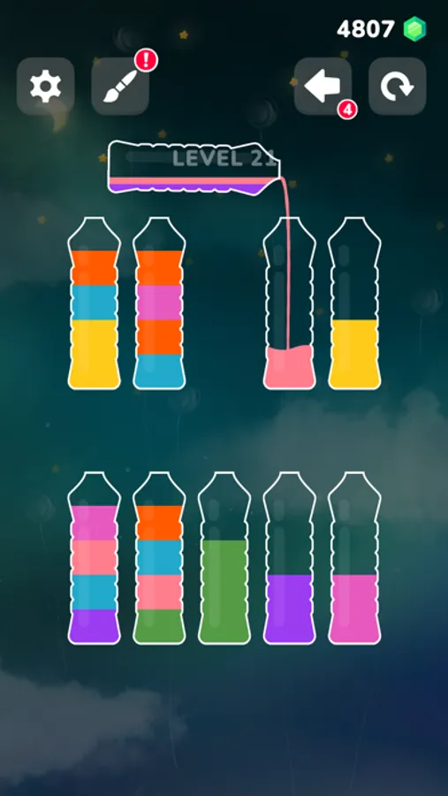 Just fill the cup with all liquids of the same color and celebrate the level completion. As simple as that!