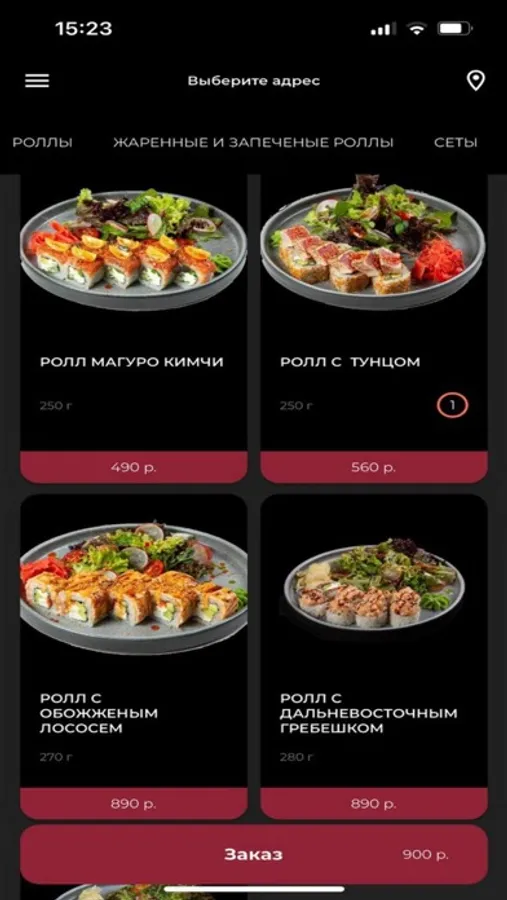 Выберите категорию блюд и добавьте блюдо в корзину