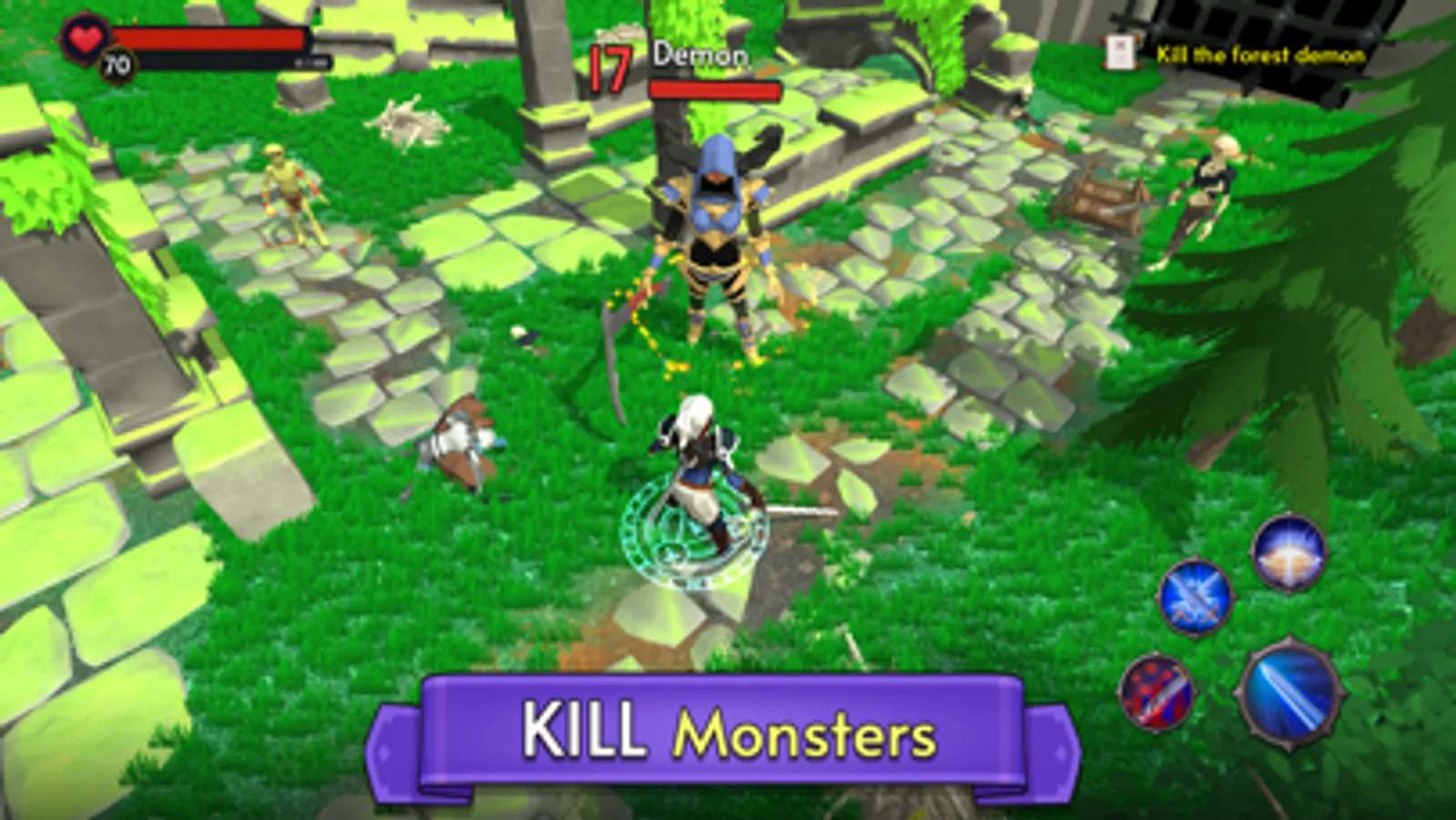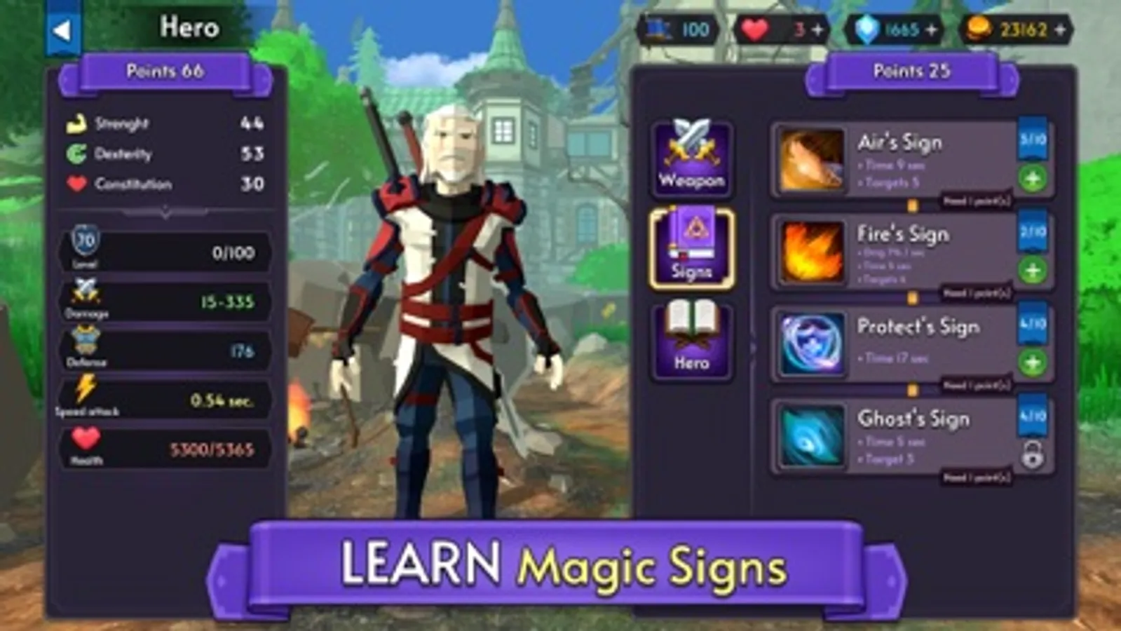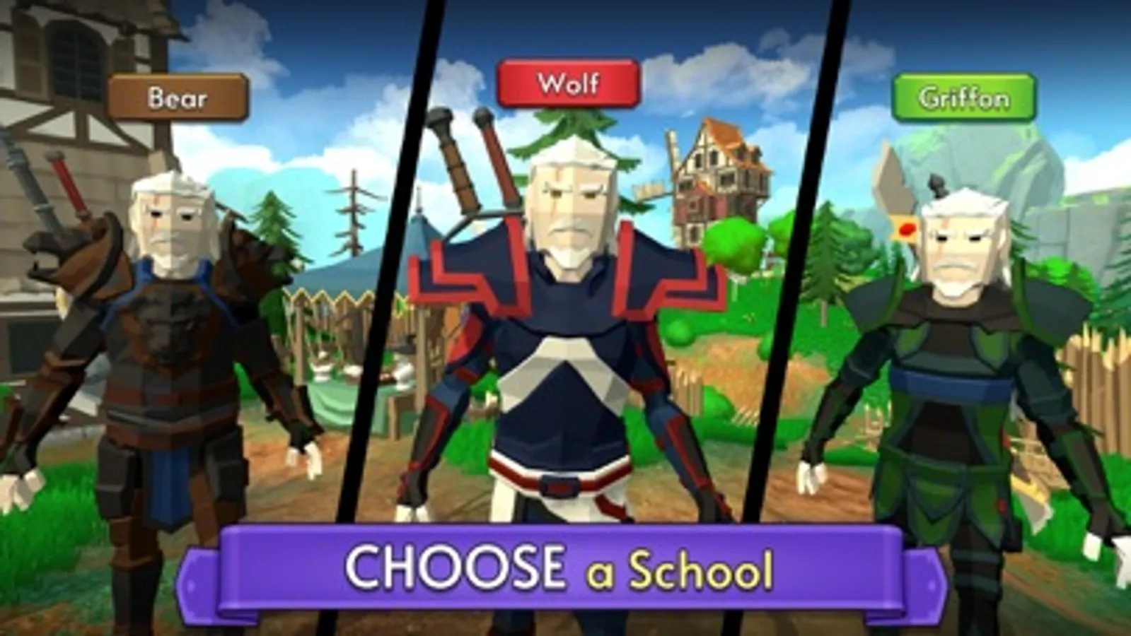 Fight the forces of evil and become a master of the Wolf, Bear or Griffon school. Study the magic Signs, collect resources, and upgrade your sword skills. Choose which school to join. Exciting adventures are waiting for you! Are you ready to become a true monster hunter and carry 2 swords on your back?