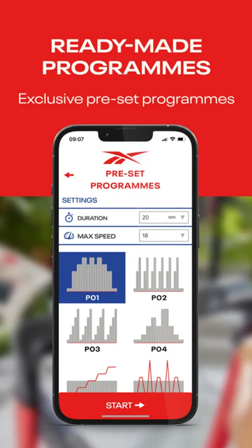 Discover a varied selection of ready-made programs designed exclusively for Reebok cardio machines. Challenge yourself and monitor your development through detailed performance reports, track the progress of your journey, and acquire valuable training insights. Furthermore, you can directly share fitness milestones on your social media platforms to celebrate each achievement.