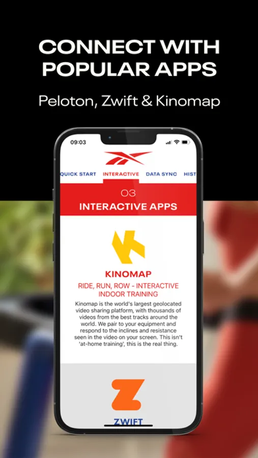 Take your training to new heights with an intuitive app that injects new life into your sessions. Connect with popular training apps like Peloton, Zwift and Kinomap to bring excitement and diversity to each workout, allowing you to join interactive classes and experience more immersive training environments.