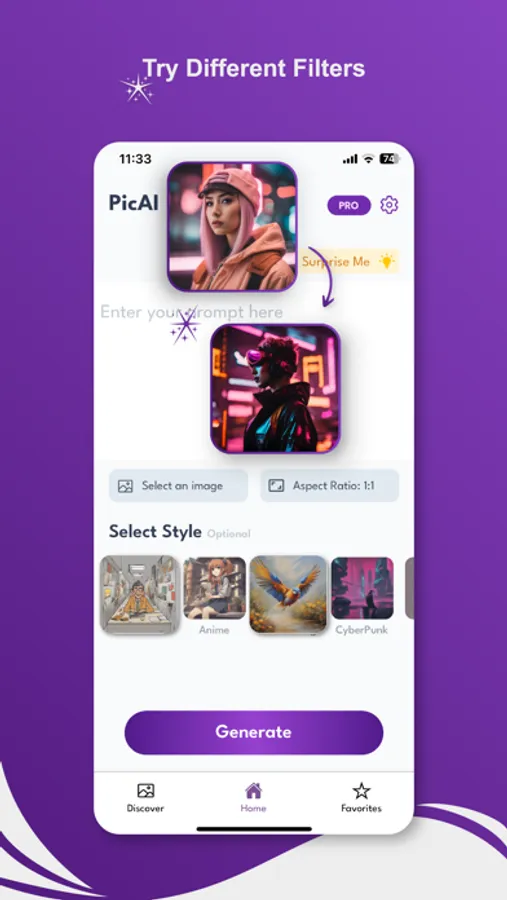 PicAI makes turning words into breathtaking digital art easy! Just type a prompt, select an art style, and see PicAI do the magic in a flash!