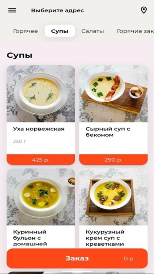 - Приложение работает круглосуточно, доставка еды и напитков осуществляется 24/7