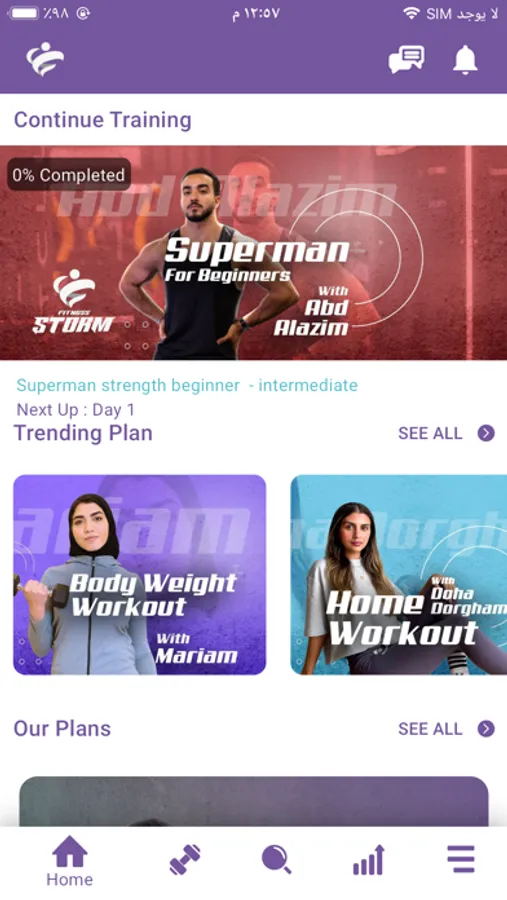 To ensure that you achieve your goal, we provide you with all kinds of exercise that target all the muscles of the body and in proportion to your level of fitness, and based on your personal information that you enter when you register with Fitness Storm, you will be provided with several training plans with the best trainers to do your part choosing the plan or exercises that you want By practicing it, and immediately start practicing it with the coach, step by step, to get a sculpted body and stronger muscles at the end of the plan.