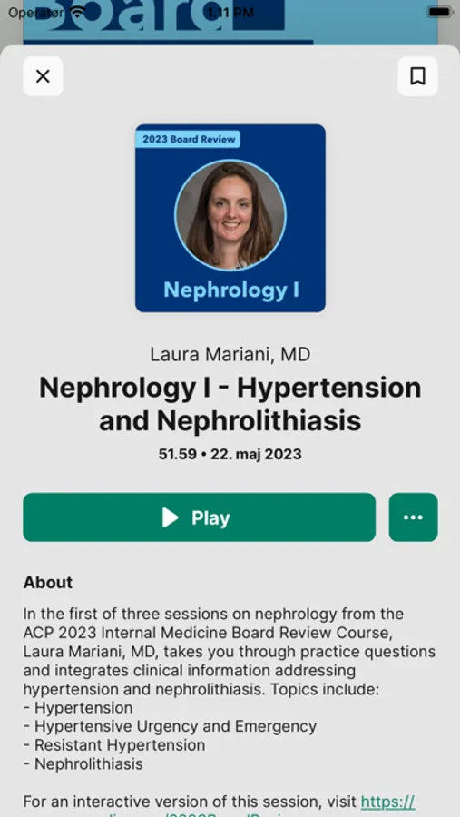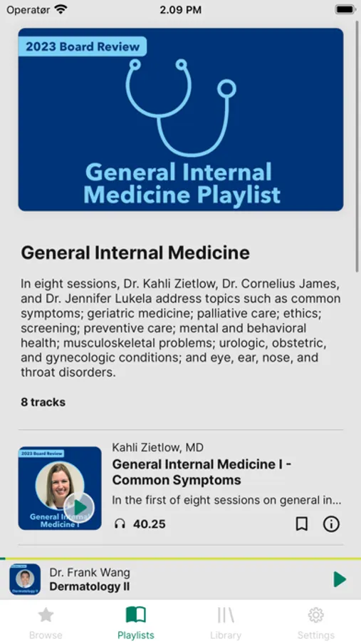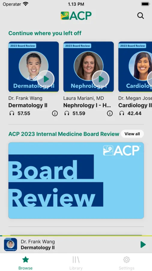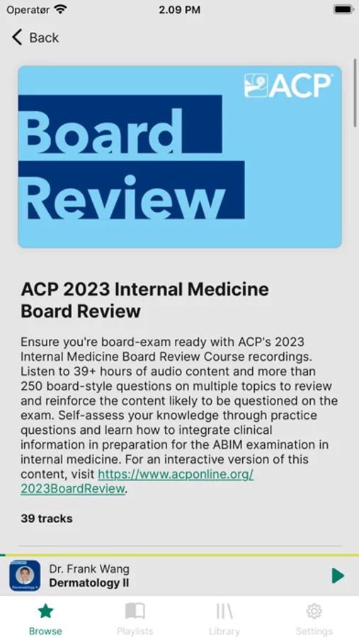 Expand your clinical knowledge with select audio versions of ACP educational products, such as Internal Medicine Board Review Course Recordings and the CME 160 package of recordings from ACP’s Internal Medicine Meeting. The ACP Audio app features over 200 hours of medical education content including clinical lectures and associated Q&A. Listen to tracks and playlists in a variety of topic areas from national experts as they review clinical information and answer targeted questions. You can play audio lectures in any order, create a list of favorite tracks, view your listening history, and download tracks to listen offline.