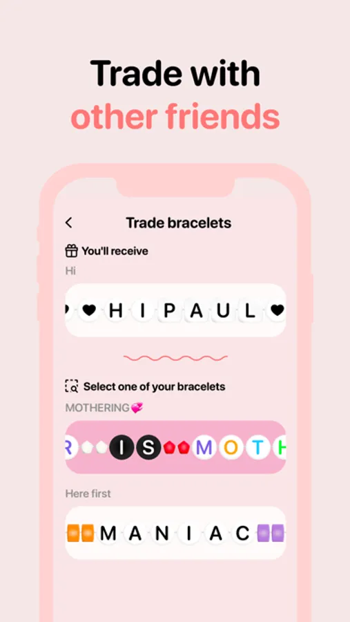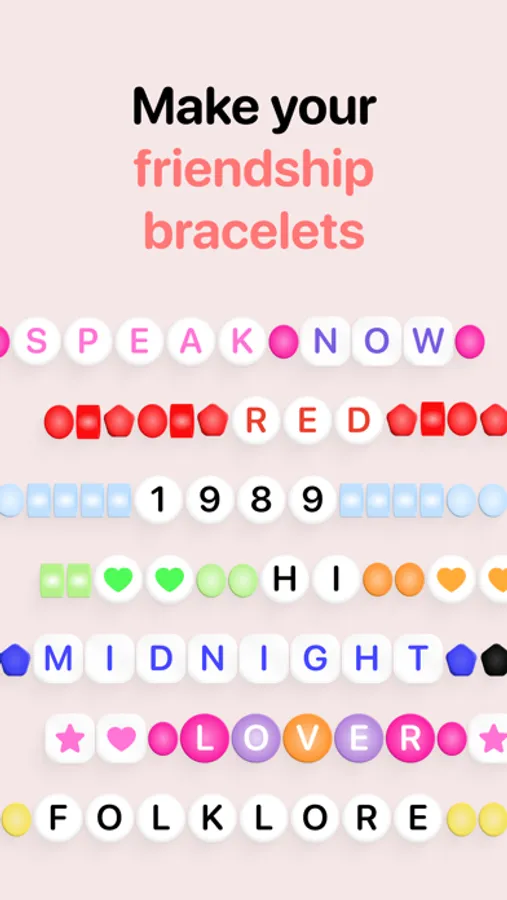 - Make friendship bracelets with our unique creation tool! You can use letters in all colors, change backgrounds, and add unique shapes to your bracelet