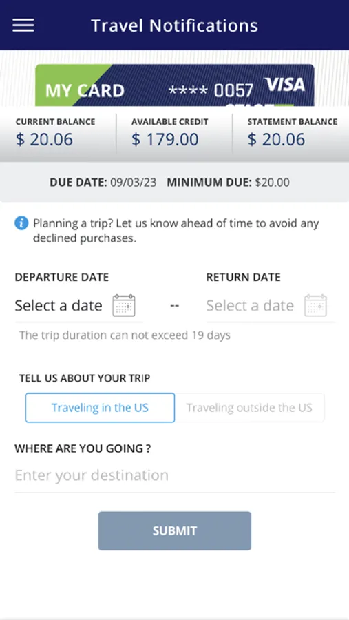 • Set your own travel notifications- don’t have your card denied for out-of-town purchases, set it and forget it