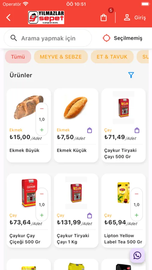 Yılmazlar Sepet uygulaması müşterilerine kendi ürünlerin sipariş girebilmesini sağlar.