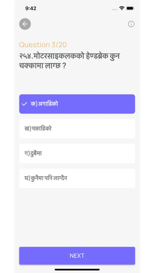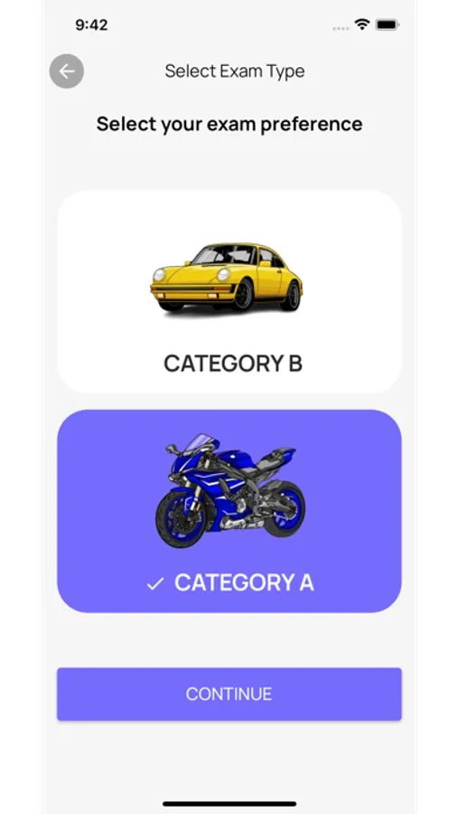 - Seprate Exam Preperation for Category A and K (motorcycle, scooter, moped) and category B (car, jeep, and delivery van).