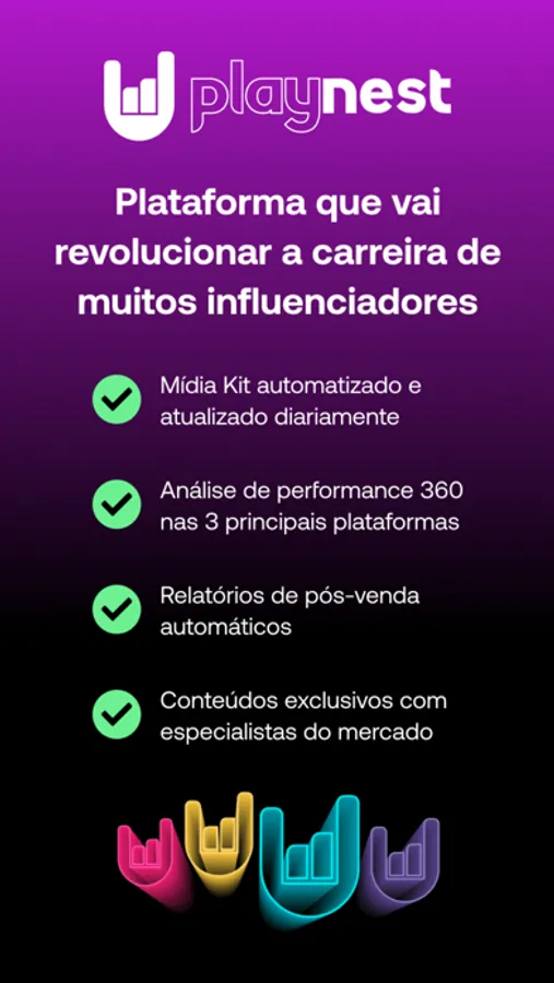 O PlayNest é um aplicativo criado com o objetivo de profissionalizar a carreira dos influenciadores e criadores de conteúdo.