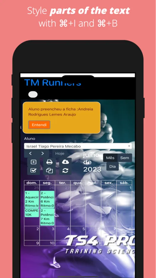 Este aplicativo para acompanhamento e feedbacks dos alunos do programa TS4 PRO. Neste aplicativo os alunos do programa TS4 PRO podem receber planilhas e dar seus feedbacks para os instrutores. Bem como verificar sua evolução dia a dia.