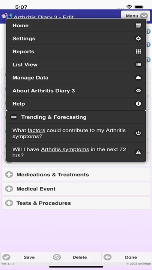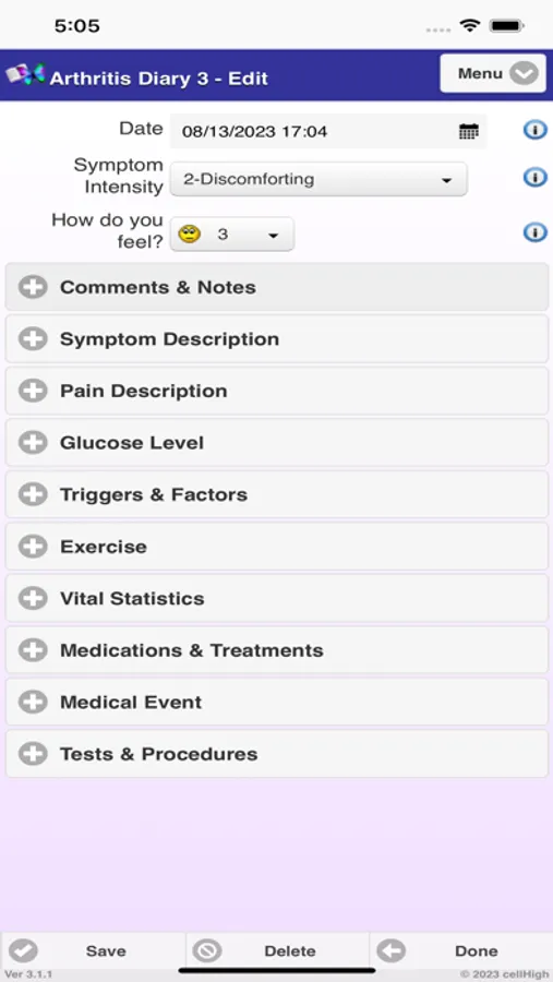 Are you like one of the millions of people who have OsteoArthritis? How can the Arthritis Diary help? The Arthritis Diary was designed to track information about your Arthritis with a few screen taps. Using this information, the application will allow you to use triggers, like day of month and week, weather patterns, diet, glucose level, sleep patterns, to predict and manage your Arthritis. The Arthritis Diary has a new “Trending and Forecasting” module that shows you which factors and triggers contribute to your fatigue and symptoms. This will help you feel better and will allow you to take control of your Arthritis. The Arthritis Diary makes it easy to perform tasks like tracking your treatment progress, graphing your patterns, emailing reports, including graphical attachments to your doctor and advisors. The Arthritis Diary will also allow you to export your data to a spread sheet all with just a few screen taps. Do you want all of your health records and information at your fingertips so that you can start feeling better. The Arthritis Diary can help.