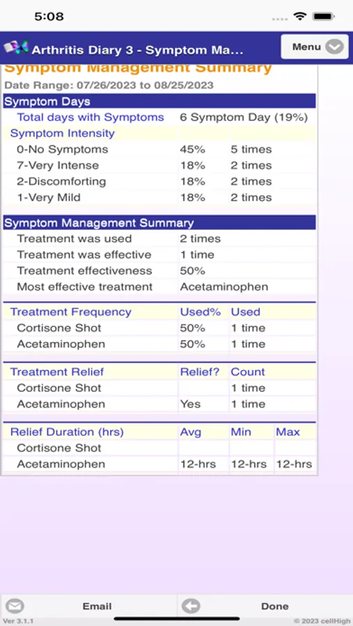 - Keep Track of which treatments really help and those that do not with the Symptom Management analysis report.